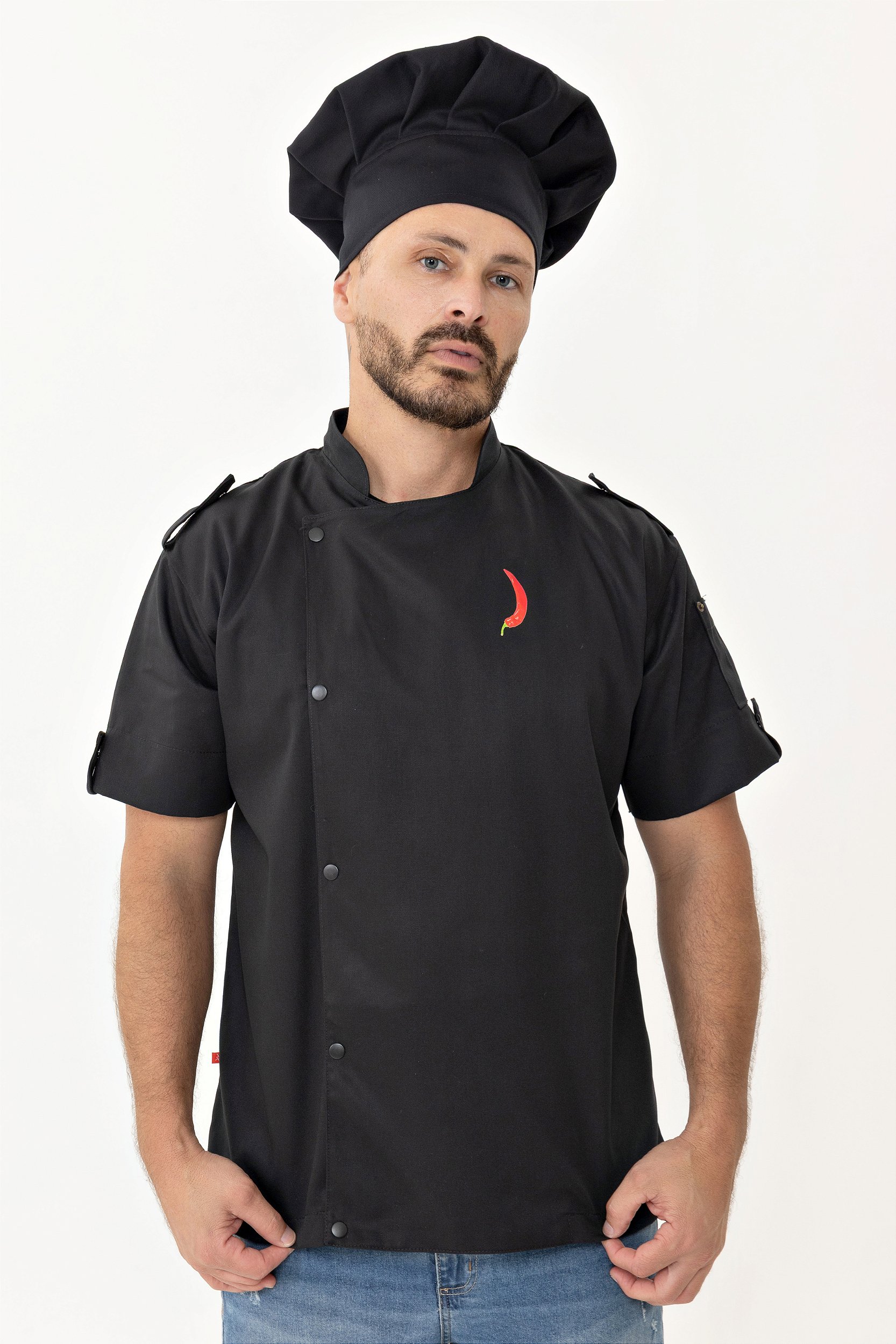 Camisa Masculina Chefe Cozinha - Dolman Farda Pepper Manga Curta - preta - Uniblu