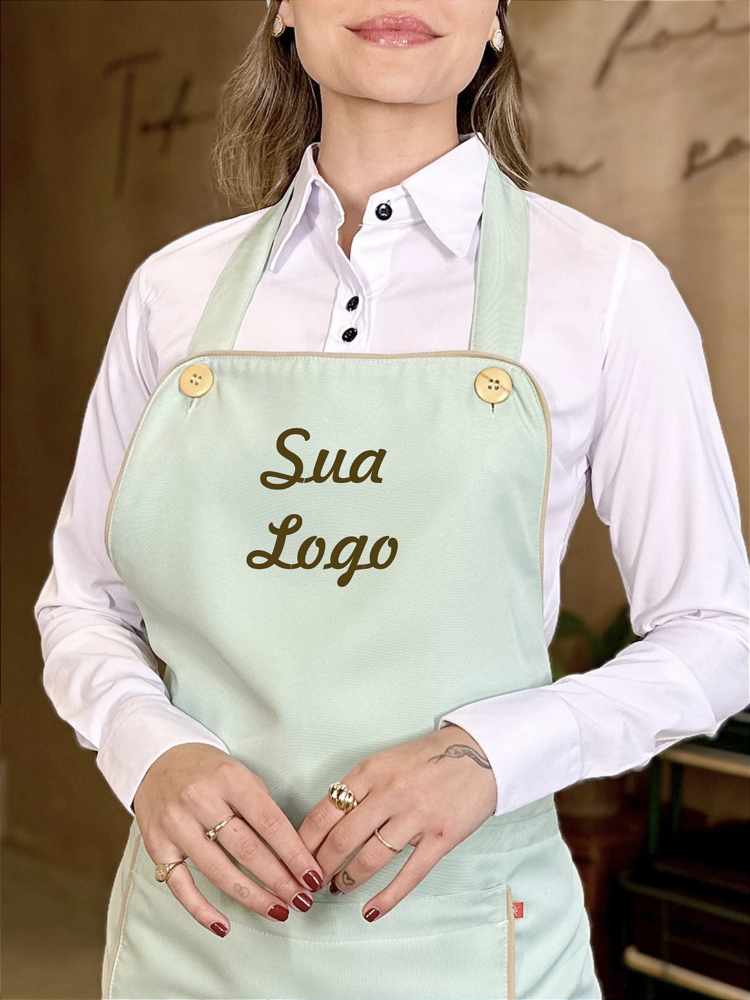 O Avental Gourmet Verde Sálvia já vem pronto para uso, mas você também pode deixá-lo com a cara do seu negócio. Basta escolher a opção “Deseja Personalizar?” e adicionar a sua logomarca, reforçando a identidade visual da sua empresa e transmitindo ainda mais profissionalismo.