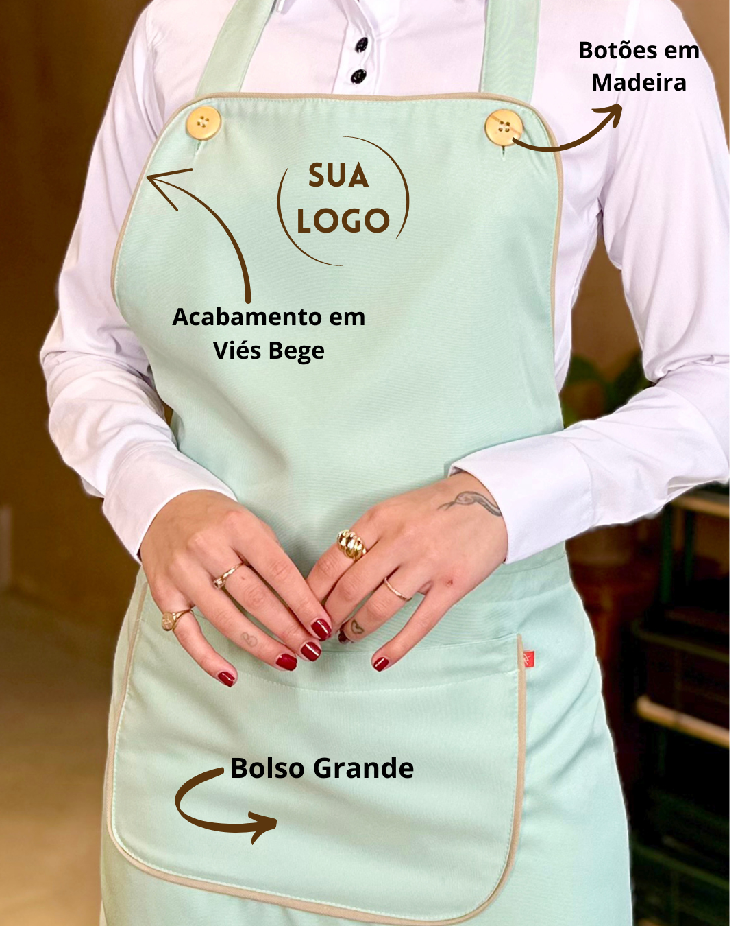 A Uniblu tem o prazer de apresentar mais uma novidade para quem vive a paixão pela gastronomia: o Avental Gourmet - Microfibra Italiana Verde Sálvia com Viés Bege. Criado para chefs, cozinheiros e atendentes que valorizam estilo, praticidade e conforto, este modelo une design sofisticado a detalhes funcionais que fazem toda a diferença no dia a dia da cozinha e no atendimento ao público.